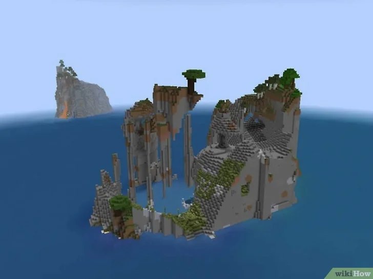 Остров странной формы. Это одна из самых необычных построек, которые вы найдете в Minecraft. Вы появитесь прямо посреди водопада, так что будьте готовы. Выбравшись оттуда, вы обнаружите холм, выступающий из океана, с множеством каменных столбов, торчащих из воды, на каждом из которых растет по одному дереву. Возможно, самым странным из всего этого является плавающий остров посреди этой необычной структуры. Неподалеку вы найдете несколько других островов и материк, который немного более пригоден для жизни.