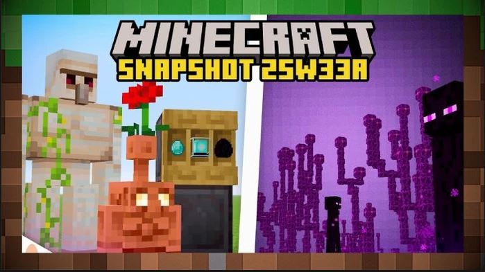Доступен для загрузки снапшот 25w33a для третьего выпуска 2025 года (предположительно, для версии Майнкрафт 1.21.9 скачать бесплатно ). Этот снэпшот добавляет новейшие функции для следующего выпуска игры, а затем фокусируется на исправлениях и улучшениях, таких как взаимодействие железных и медных големов, визуальные изменения в Краю и черновики для внутриигрового чата.