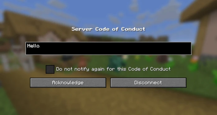 Самым обсуждаемым нововведением стало появление внутриигровых правил поведения в Майнкрафт 1.22 . Теперь на сервере может отображаться специальный экран перед входом в игру. Чтобы принять эти правила, необходимо принять их. Флажок позволяет отключить отображение текста при каждом входе в игру, если правила не изменятся.