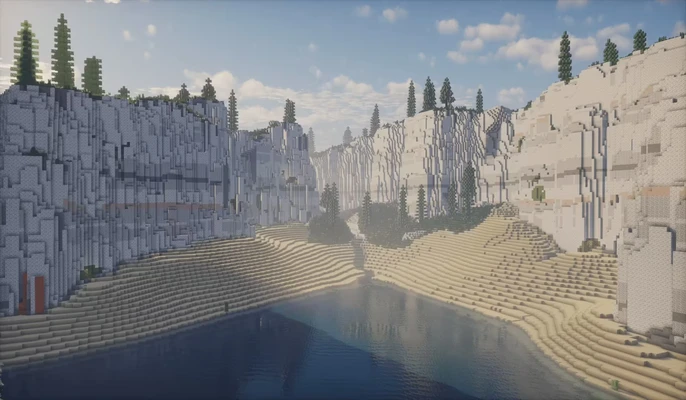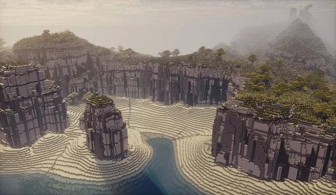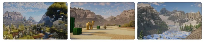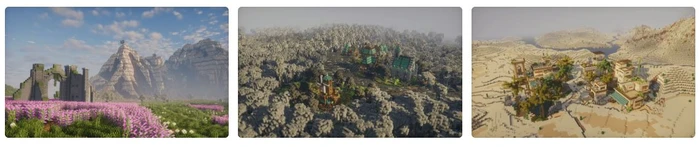 Bloomvale не просто перерабатывает знакомые локации Minecraft. Он представляет собой настоящую мозаику оригинальных ландшафтов. Здесь представлены как знакомые биомы, такие как равнины, саванны и берёзовые леса, так и новые варианты, такие как красная пустыня , лавандовая тайга , ледниковые горы и грибные берега .