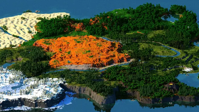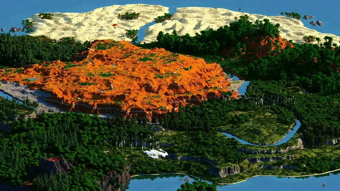 За этим проектом стоит AquaLessPantsu , создатель, привыкший к масштабным картам. Здесь цель ясна: предложить мир, достаточно обширный и разнообразный, чтобы избежать монотонности, оставаясь при этом верным основным механикам Minecraft.
