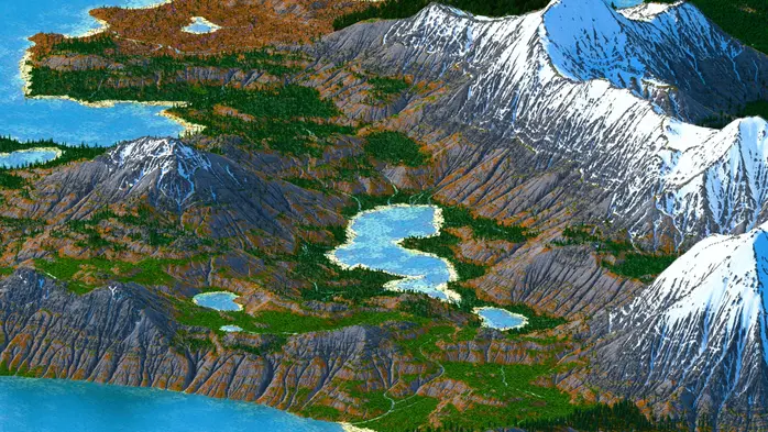 Чтобы в полной мере раскрыть впечатляющий рельеф, карта использует пакет данных , который увеличивает максимальную высоту до Y = 1024. Карта представлена в формате .RAR с оптимизированной совместимостью с Distant Horizons , что позволяет отображать весь мир даже на больших расстояниях.