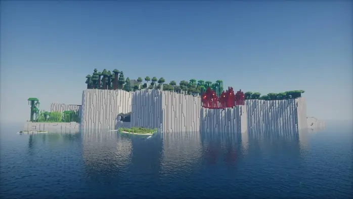 В отличие от многих базовых островов для выживания, это торение не ограничивается одним лишь разнообразием ландшафта. Оно включает в себя всё, что делает полноценную игру Minecraft : руды , природные структуры , пещерные системы и скрытые области .