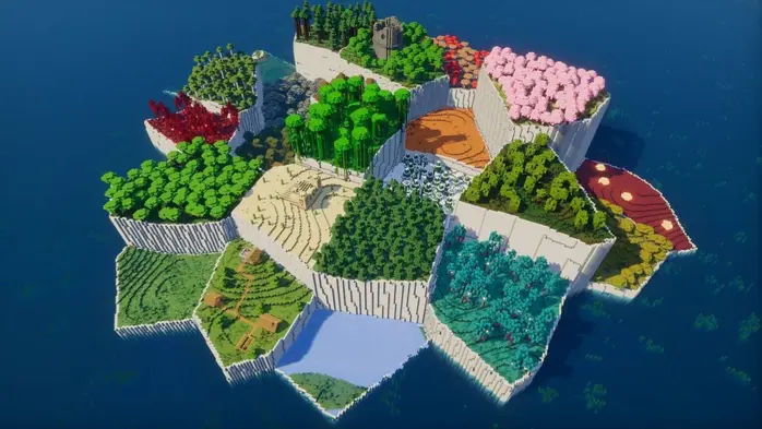 Создатель TryzzMC создал необычную карту, переосмысливающую классическую идею острова выживания. Карта называется «Multi-Biome Survival Island» и объединяет 28 различных биомов на одной территории , образуя компактный мир с богатым визуальным и географическим разнообразием.