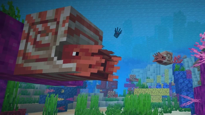 Добавлены два новых водных моба : наутилус и зомби - наутилус . Первый, миролюбивый и элегантный, может быть приручен с небольшим терпением (и несколькими иглобрюхами ). Оседлав его, вы получаете эффект « Дыхание наутилуса » , который приостанавливает потребление кислорода, пока вы остаётесь в седле .
