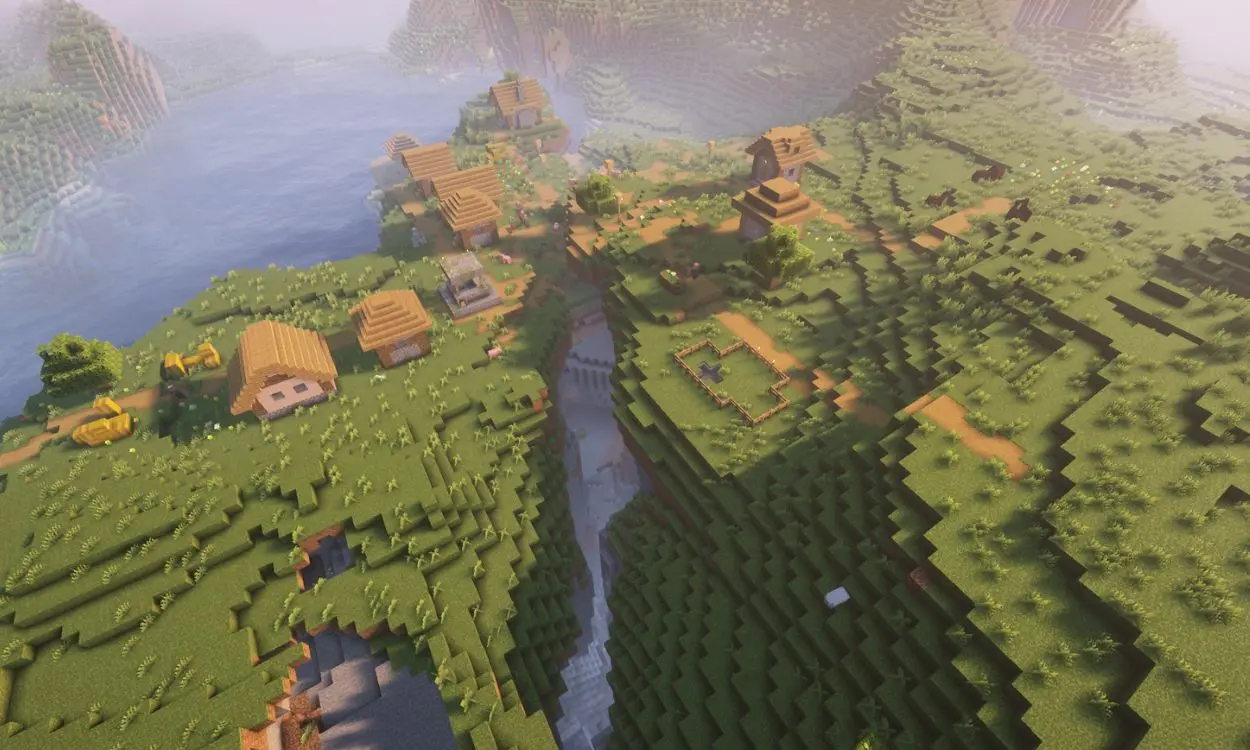 Деревни, расположенные рядом с оврагами, — не новость. Они представляют собой идеальную смертельную ловушку как для жителей, так и для игроков. Но овраг в этом сиде для деревни в Minecraft не так уж и опасен, чтобы в него прыгать. Он ведет прямо к открытой шахте. Вы можете войти в нее, собрать все ресурсы и вернуться в деревню, чтобы построить безопасную базу. Вы можете посмотреть лучшие сиды для строительства баз и городов в Minecraft прямо здесь.