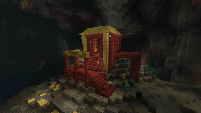 Что касается строительства, то два набора блоков предлагают красно-желтую палитру, которой игре не хватало. Киноварь, в частности, восполняет этот пробел для построек в стиле храма или Нижнего мира .