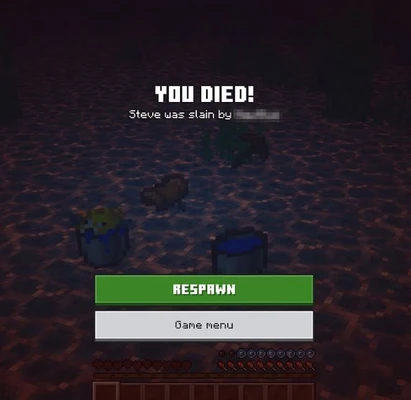 На снимке, опубликованном в Instagram, запечатлён экран смерти в бездне. Стив только что погиб, вероятно, от нападения неизвестного существа . На земле, среди брошенных предметов, отчётливо видны седло , ведро с рыбой-собакой и деревянная кирка .