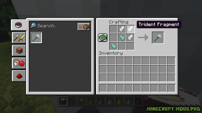 Во-первых, у трезубцев наконец-то появился собственный рецепт крафта. Ушли утонувшие , которые держат их исключительно, теперь вы можете получить их, объединив фрагменты трезубца, собранные у трех древних стражей, которые находятся в океанском монументе, с некоторыми Призмариновые осколки.