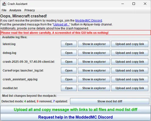 Crash Assistant предназначен не только для геймеров, но и для создателей модпаков .
