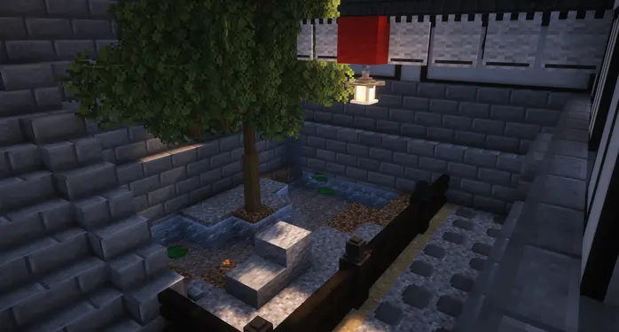 Декоративная часть также включает в себя иллюстрированные экраны , каменные фонари , окрашенные в красный цвет столбы, символизирующие ворота тории, а также предметы повседневного обихода, такие как чайные сервизы или традиционный очаг ирори .
