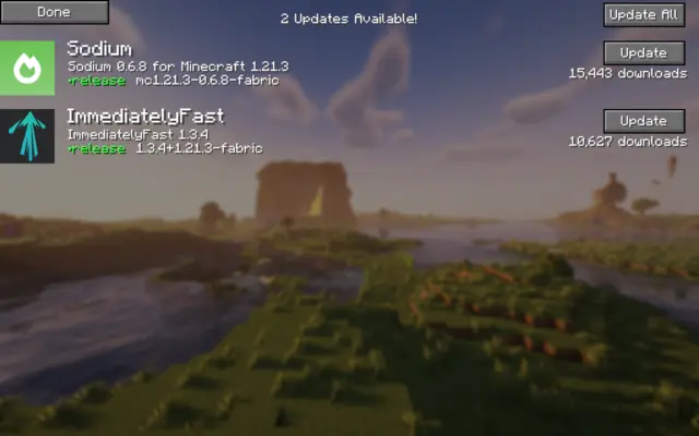 Нет необходимости каждую неделю проверять, обновлены ли ваши моды. Значок обновления (↻) появляется в правом верхнем углу экрана навигации, как только становится доступна новая версия для одного из установленных вами модов. Для синхронизации всех файлов достаточно одного щелчка.