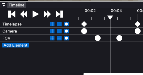 Flashback предлагает интерактивную временную шкалу , позволяющую устанавливать ключевые кадры для различных параметров. Это позволяет управлять камерой, полем зрения (FOV) и даже активировать покадровую съёмку. Каждый элемент можно редактировать и просматривать непосредственно в интерфейсе.