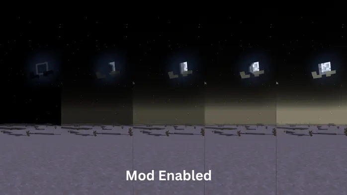 Модифицированные леса, болота, бесплодные земли и биомы : цвет тумана соответствует окружающей среде. Туман принимает изменения через пакеты ресурсов и поддерживает добавленные биомы, что позволяет легко гармонизировать модпак без дополнительных настроек.