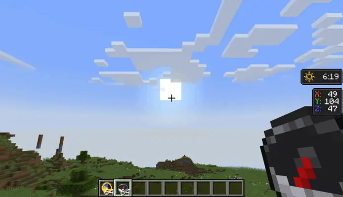 Достаточно просто иметь компас в инвентаре, чтобы отобразить небольшой экран с координатами X и Z игрока. Мод не требует держать предмет в руке; его можно хранить где угодно, даже в сумке, не отключая при этом его функционал. Такой подход точно отражает истинную роль компаса, который призван направлять движения игрока.