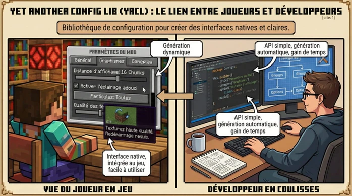 YetAnotherConfigLib (YACL) — это библиотека конфигурации для модов Minecraft , предназначенная для создания понятных и согласованных графических интерфейсов, непосредственно интегрированных в стиль игры, а также предоставляющая полный API для чтения и записи файлов конфигурации.