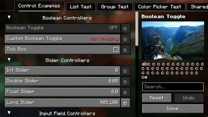 Каждый параметр не привязан к фиксированному отображению. Например, логический параметр может быть представлен в виде флажка или кнопки включения/выключения, а числовое значение может использовать текстовое поле или ползунок. YACL также позволяет создавать пользовательские контроллеры, когда предоставленных компонентов недостаточно, что обеспечивает значительную свободу в проектировании интерфейса.