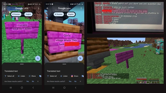 Преследования не ограничивались только плакатами. Подобные сообщения были видны и в игровом чате, что способствовало созданию токсичной атмосферы в женском лагере.