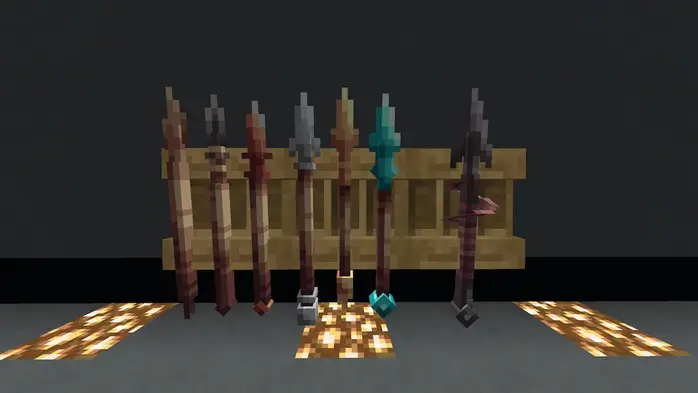 Текстурный пакет 3D Spears Reimagined полностью перерабатывает копья Minecraft, заменяя семь стандартных текстур на 3D-модели, которые выглядят гораздо интереснее и эффектнее в игре. Каждое копье сохраняет оригинальный стиль Minecraft, но с более сложным дизайном, благодаря чему оно кажется менее простым и более особенным в использовании.
