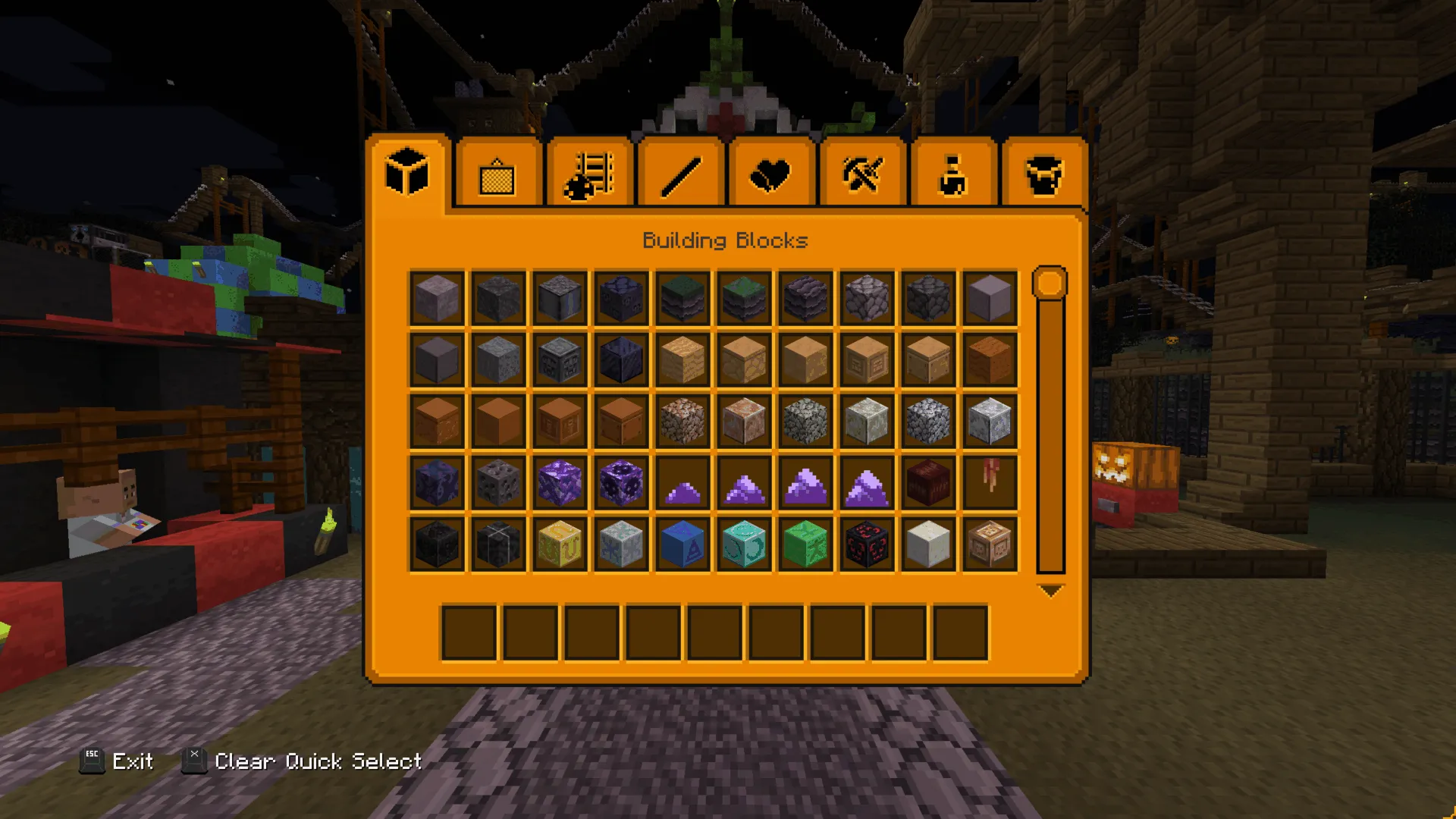 Всё в этом наборе напоминает о ночи 31 октября: блоки приобретают более тёмные оттенки, предметы украшены зловещими узорами, а существа выглядят так, будто сошли со страниц фильма ужасов. Даже пользовательский интерфейс украшен осенними цветами и мрачными символами, создающими особую атмосферу.