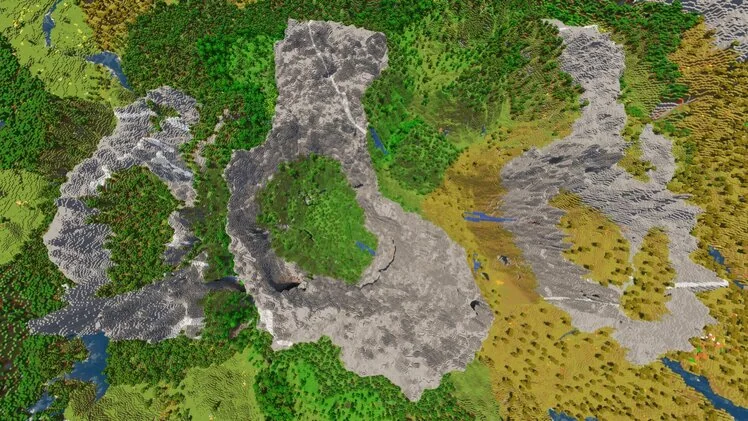 Этот мир представляет собой большой остров, охватывающий все основные биомы , а также ряд деревень , аванпостов и даже заброшенную шахту, расположенную недалеко от обитаемых земель. Это идеальное место для длительных игровых сессий.