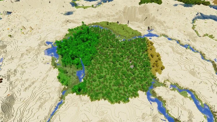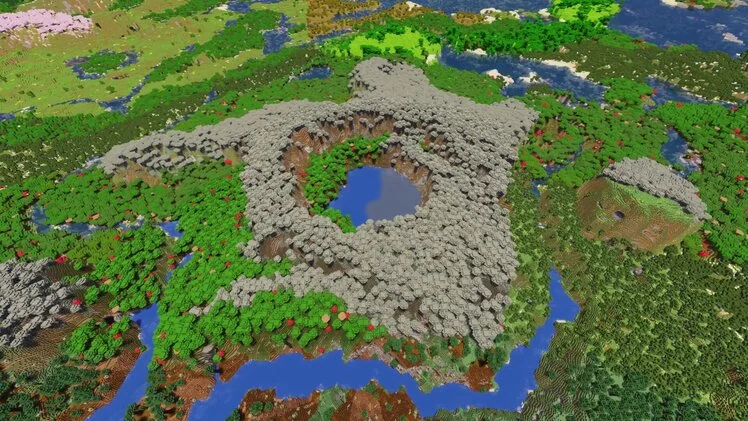 Этот сид выделяется наличием всех основных биомов на одном континенте. Кратер из капельного камня , несколько близлежащих деревень и пустынный храм дополняют этот мир, созданный для исследователей.